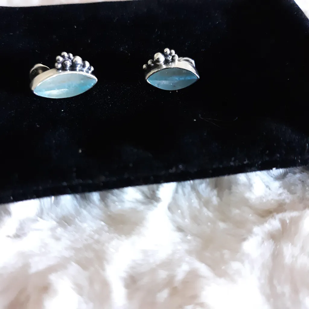 So glad I was able to find Gilalite earrings at all, and especially earrings that are so unique and stylish! I was surprised to find that one is larger than the other, but that adds to the pair's one-of-a-kind appeal. The crystals have layers of icy blue coloring, and the sterling accent beads set them off perfectly. Truly a work of art, and very welcome addition to my collection. Thanks so much!