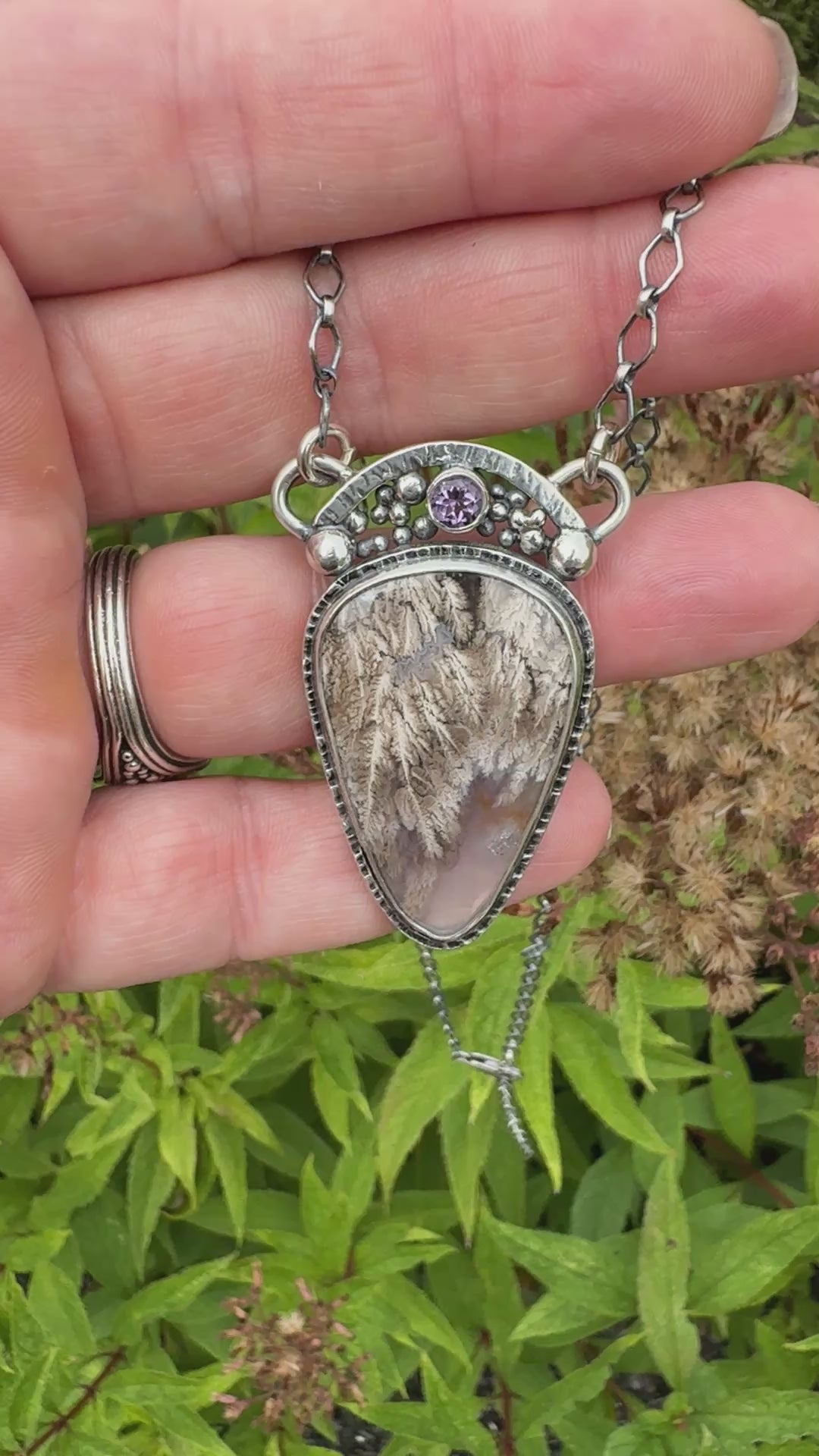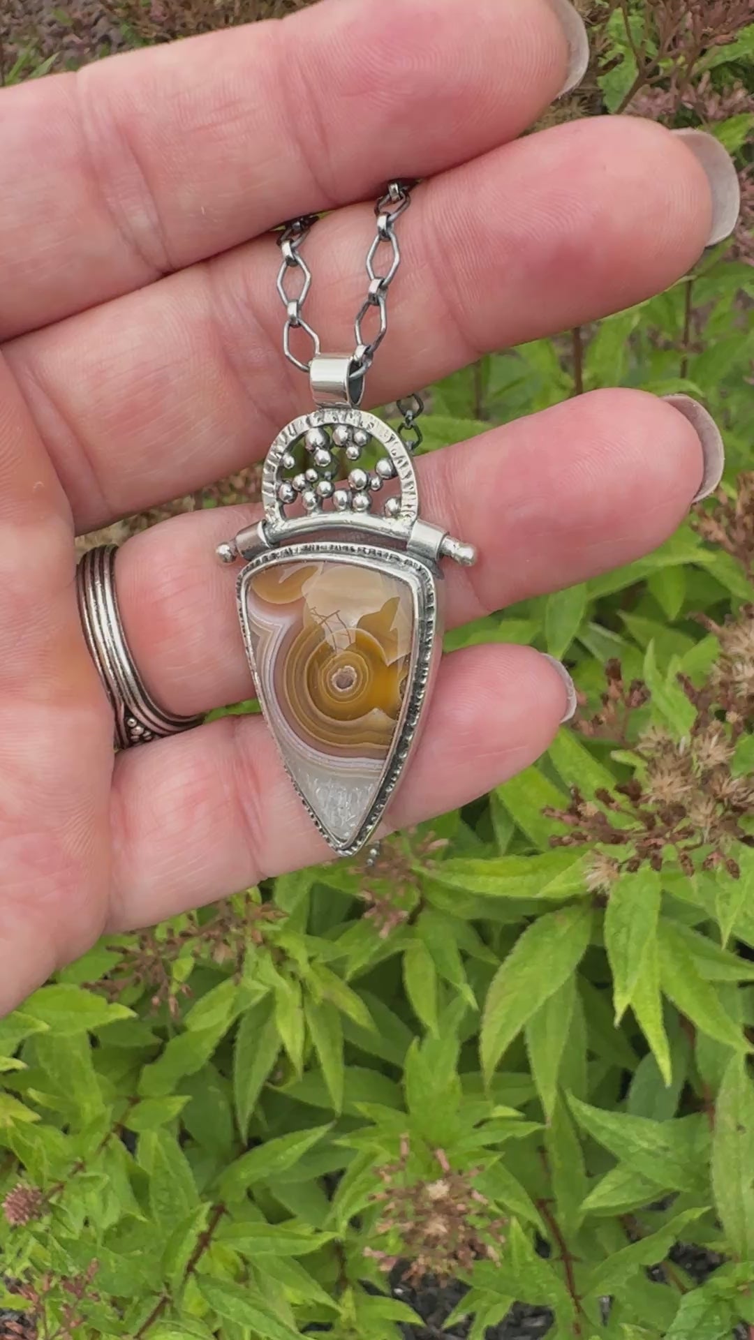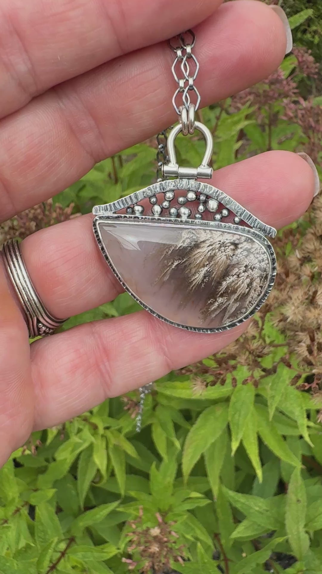 African Fire Sunstone Pendant Necklace Sterling Silver This necklace is so beautiful. In the light you can see a horizontal rainbow of colors. This will go with anything I'm wearing! It's so well made and arrived quickly. I give it 5 stars!