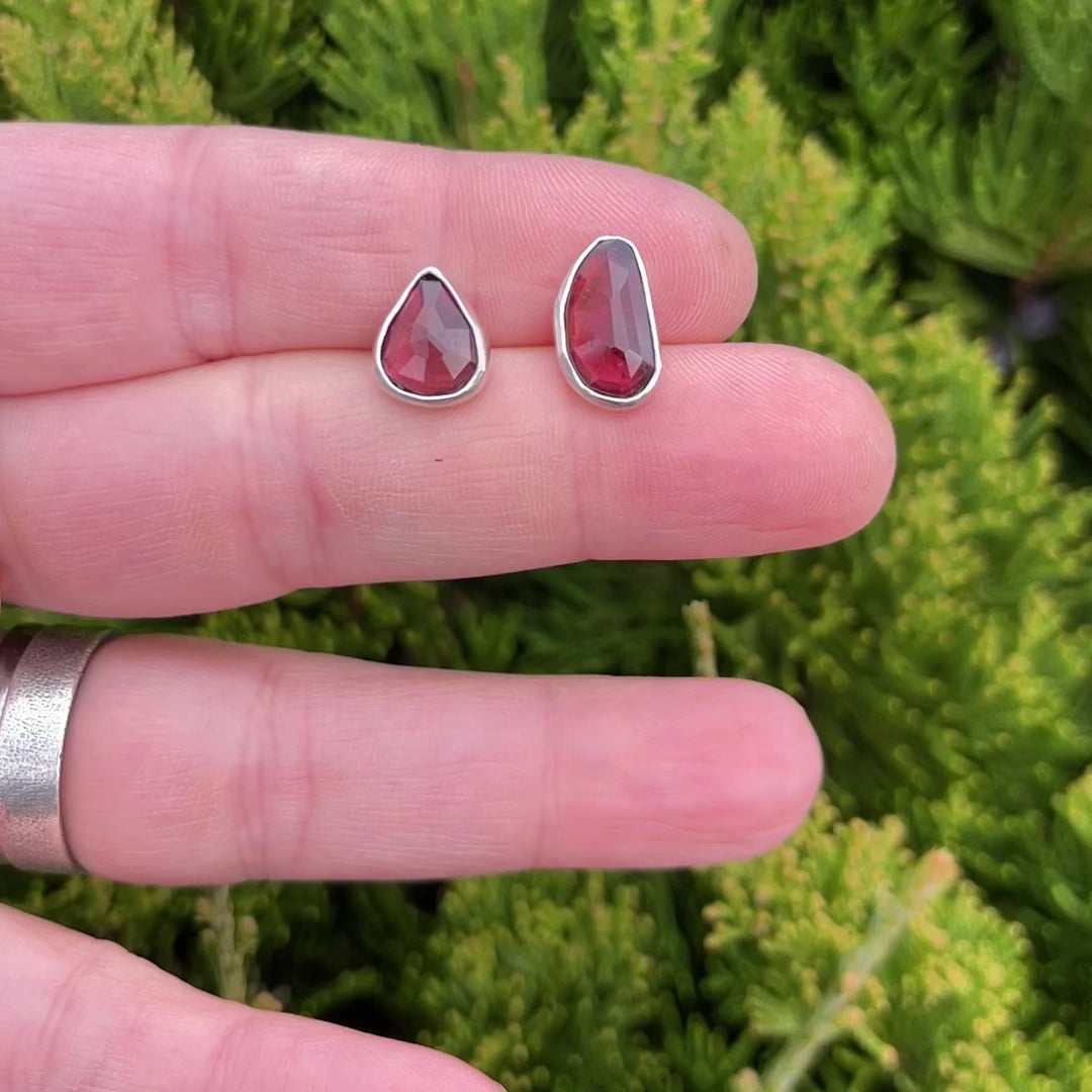 Dark Pink Tourmaline Mismatched Stud Earrings Sterling Silver Sale price$237.00