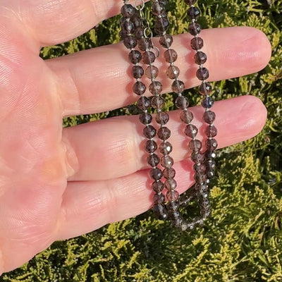This strand of smoky quartz radiates a warm, earthy elegance. Each 4.5mm faceted round bead offers crisp clarity and a subtle depth of tone, with facets that catch the light beautifully, giving the necklace a refined sparkle. Its neutral yet rich coloring makes it a wonderfully versatile piece, equally suited to layering with other favorites or wearing on its own for understated sophistication.
